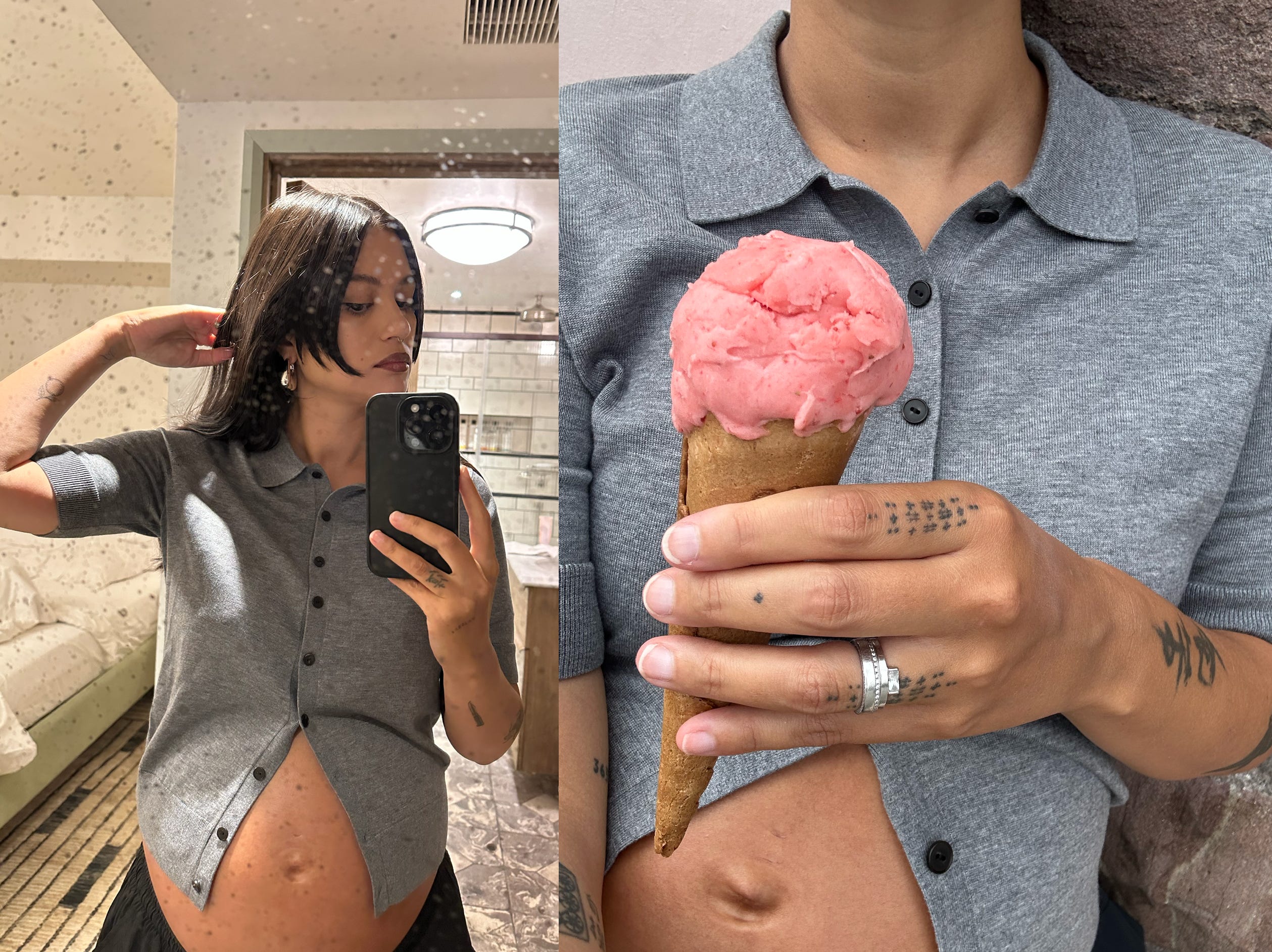 As you probably know, I have a thing for cool, pregnant women. There’s something so alluring about a well-dressed bump; it feels like a powerful expression of femininity, and also a mastery of personal style. Dressing a body that’s changing every day is a unique styling challenge, but one which someone like Lydia Pang makes look easy. Here she is serving effortless goth glam whilst running ship at MØRNING and baking her first bae: